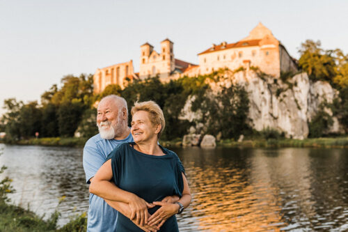 Kraków daje mnóstwo możliwości, ale najważniejsze jest to, żeby miejsce pasowało do pary. Czasem wybieramy lokalizację, która ma dla obdarowanych szczególne znaczenie. Miałam na przykład parę, która dostała sesję na prezent z okazji 35. rocznicy ślubu, której pierwsze spotkanie (i pocałunek w rękę!) odbyło się na Rynku Głównym. Takie detale sprawiają, że sesja rocznicowa w Krakowie staje się małą podróżą do przeszłości.